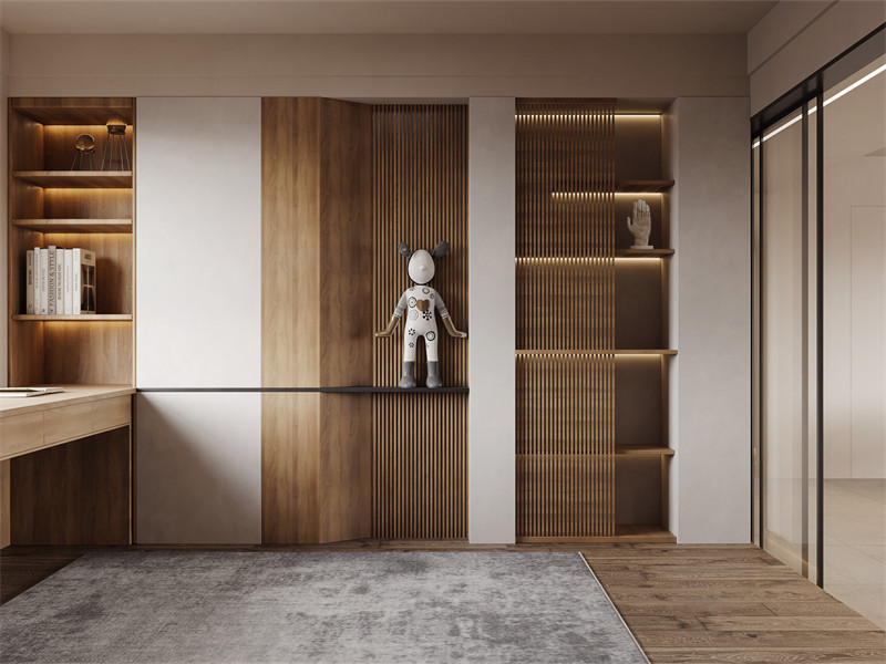 本案以侘寂混搭风格为内核,浅棕、水泥灰为主调,借木质、水泥等自然材质传递侘寂质朴感,又以潮玩、艺术挂画、个性家具注入现代趣味。从卧室的治愈休憩、餐厨的烟火社交,到客厅的松弛互动,均在质朴粗犷的侘寂基底中,融合现代艺术化表达,诠释“自然与个性共生”的居家美学。
