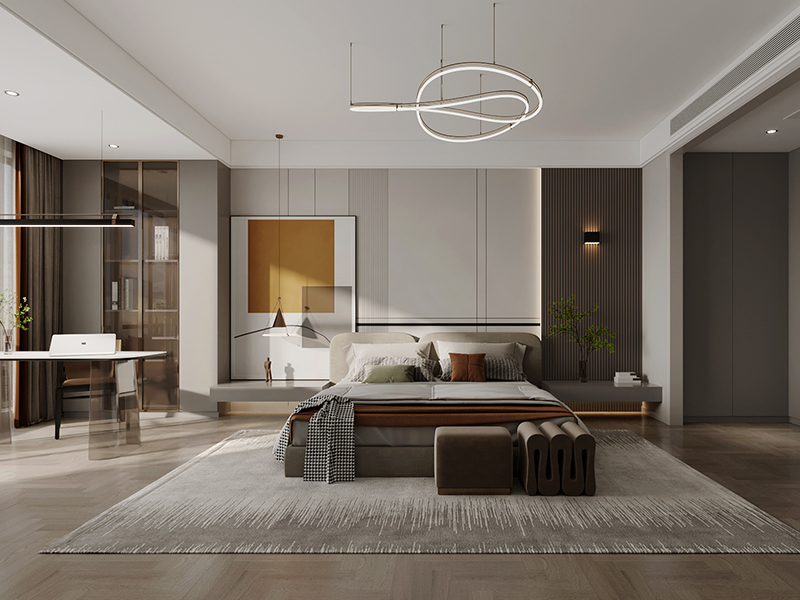 本案以奶油色系串联,借金属灯具、艺术挂画等细节注入设计质感,既满足现代家庭社交、休憩、学习等多元生活需求,又诠释“治愈感与设计感共生”的奶油居家美学。