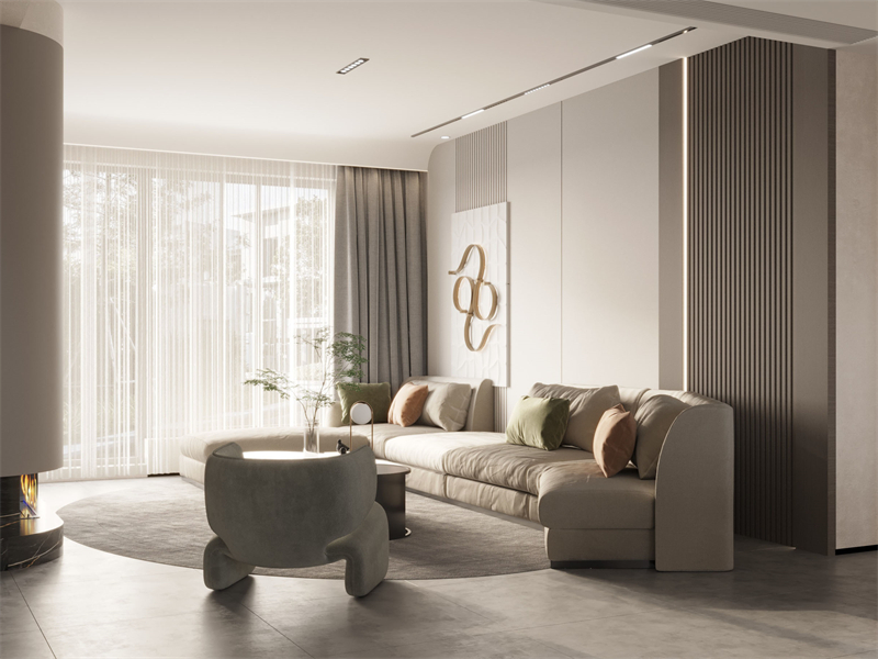 本案以奶油色系串联,借金属灯具、艺术挂画等细节注入设计质感,既满足现代家庭社交、休憩、学习等多元生活需求,又诠释“治愈感与设计感共生”的奶油居家美学。