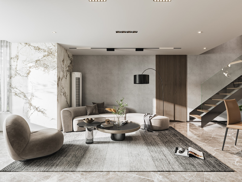 本案以现代简约风格为内核,从餐厅的实用饮食场、客厅的松弛社交域,到卧室的慵懒休憩区,均在简约中融入精致细节,既满足多元生活需求,又以冷静色彩与柔和质感,诠释出“干练与温度共生”的现代简约居家美学。