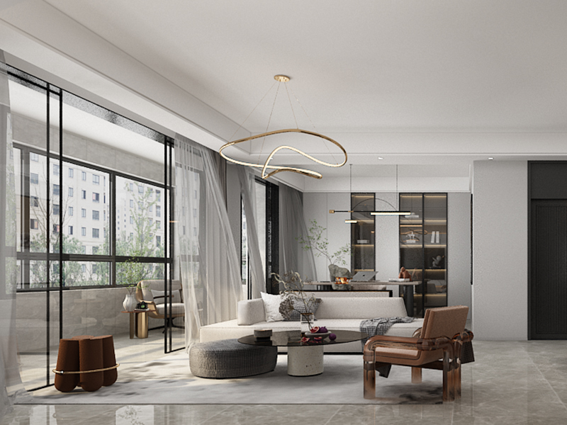 本案以现代简约风格为内核,黑白灰与米棕为中性主调,借利落线条、金属与石材等质感材质构建层次。诠释“干练与舒适共生”的居家美学,为居者打造兼具格调与烟火气的现代生活场域。