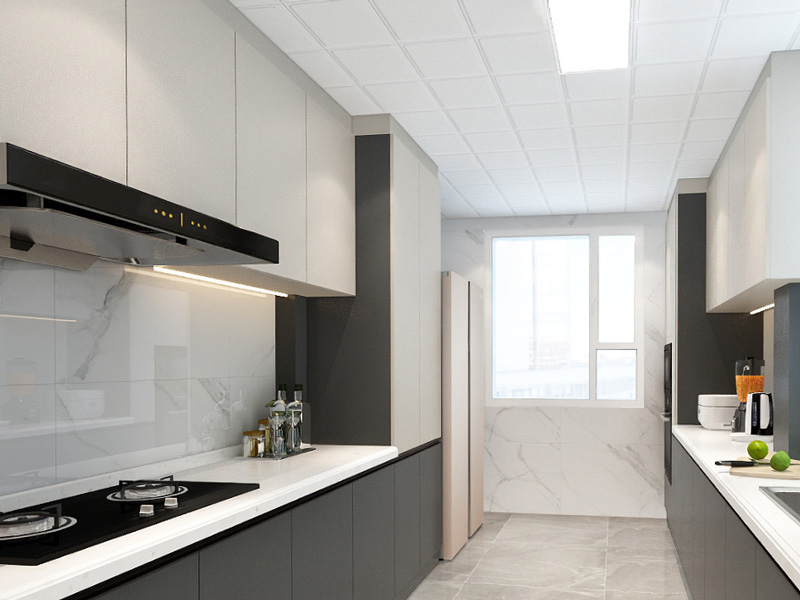 4.吊顶一般在橱柜安装之前安装好的,在涉及到的烟机孔、伸缩软管等位置提前预留好。