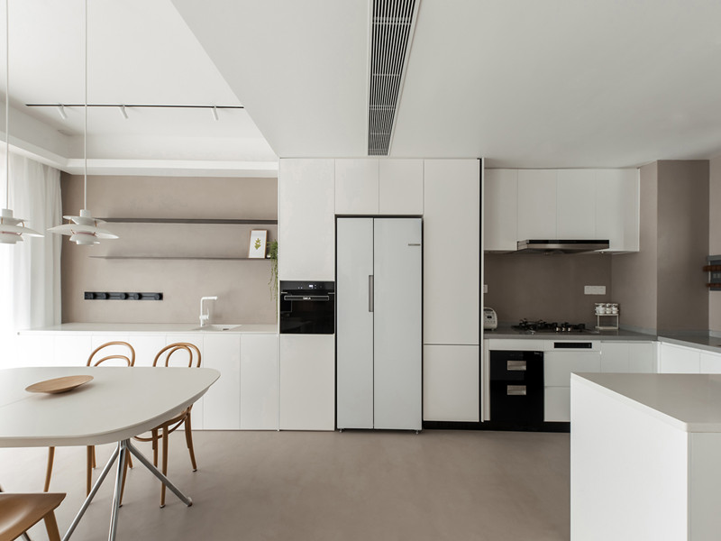 局部墙体可以改变,集中功能区,形成整体,减少动线,便于清洁。