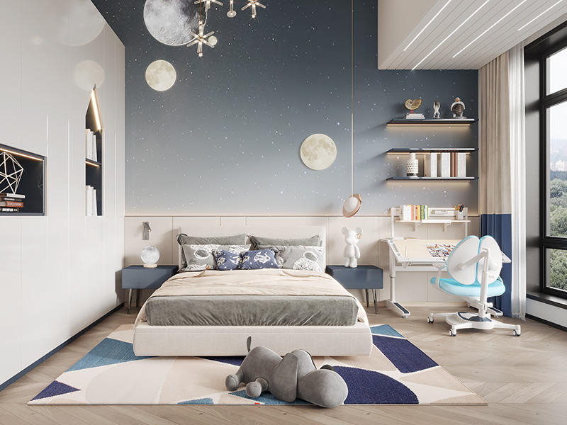 建议在家中给孩子单独规划一个睡眠空间,参照孩子的性格和需求等,进行装饰布局,注意营造空间的温馨、童趣氛围。另外,可以考虑融入学习区设计,让孩子有宁静的学习氛围。