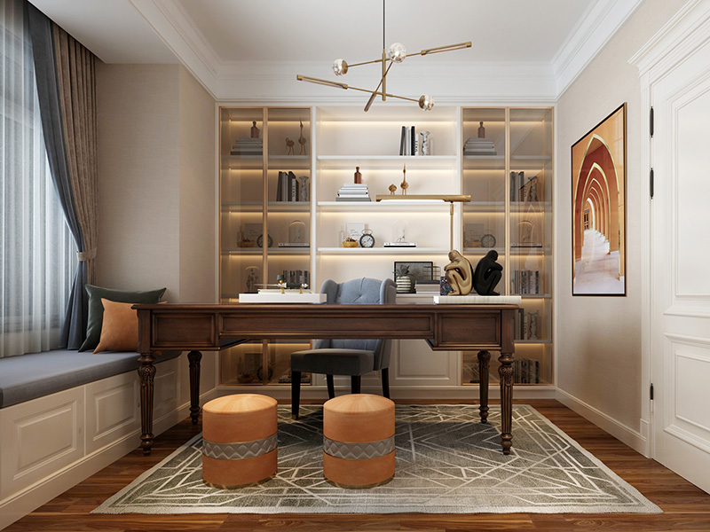 如果室内空间充足,可以考虑单独规划出一个房间,将其打造成书房,做安静的阅读小天地。在装修时要延续整体的装修风格和色调,建立与居室整体的视觉关联感,同时要考虑隔音设计,呈现安静舒适的阅读氛围。