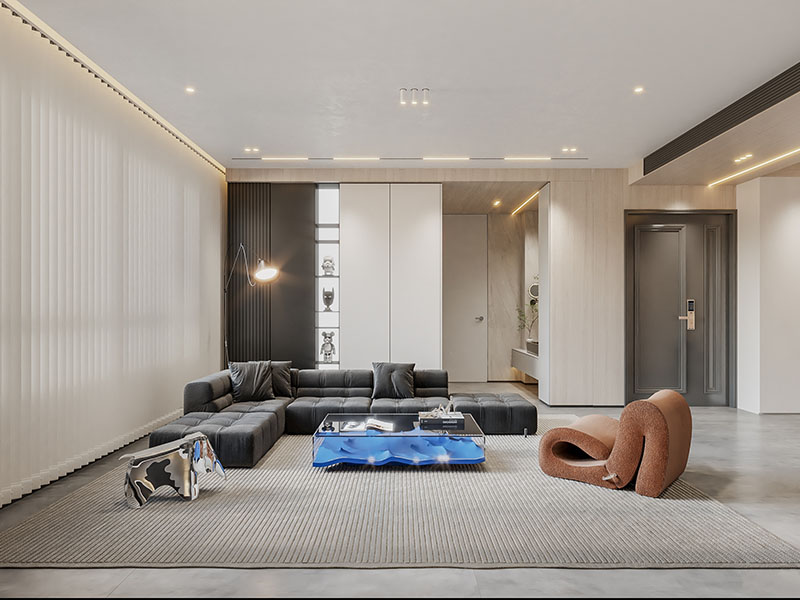 本案以简约风格为内核,以灰白、木色为柔和主调,凭借利落线条、质感材质与功能化布局等,打造层次丰富的现代居家美学。