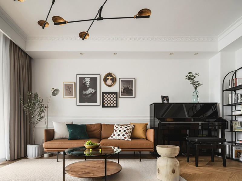 本案以奶油色系串联,借金属灯具、艺术挂画等细节注入设计质感,既满足现代家庭社交、休憩、学习等多元生活需求,又诠释“治愈感与设计感共生”的奶油居家美学。