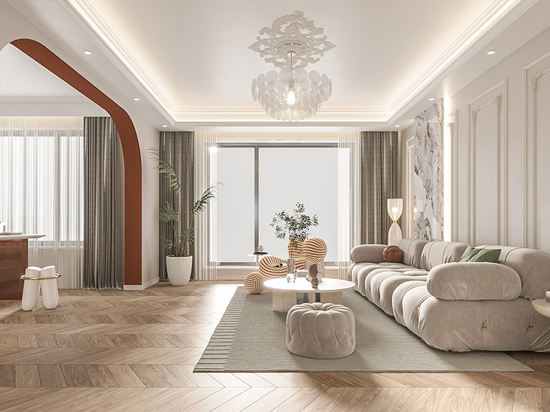 融入木地板等木材装饰,结合多元化的柔和光源和绿植的点缀,为优雅浪漫的法式居室增添温暖基调。