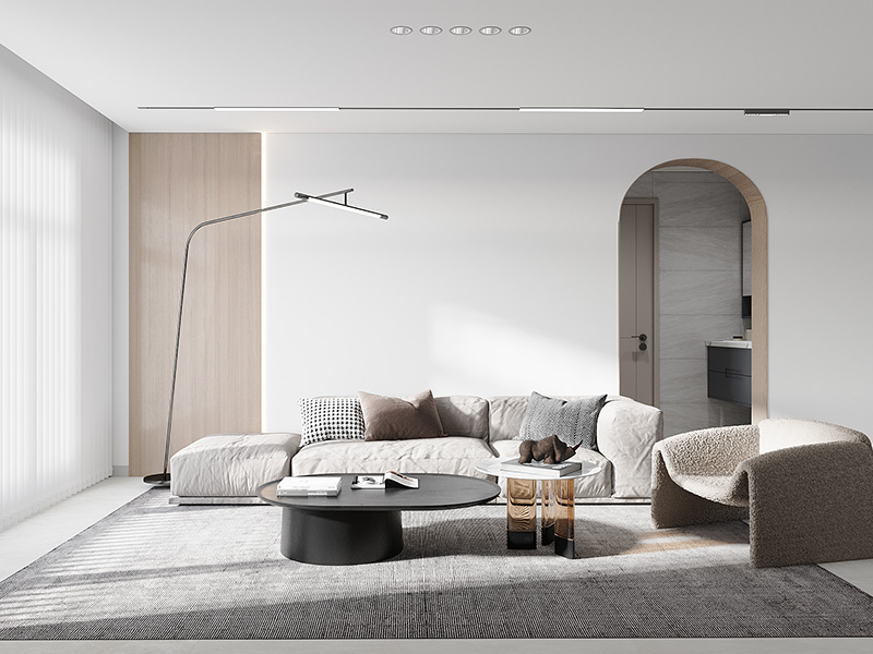 本案以简约风格为内核,以灰白、木色为柔和主调,凭借利落线条、质感材质与功能化布局等,打造层次丰富的现代居家美学。