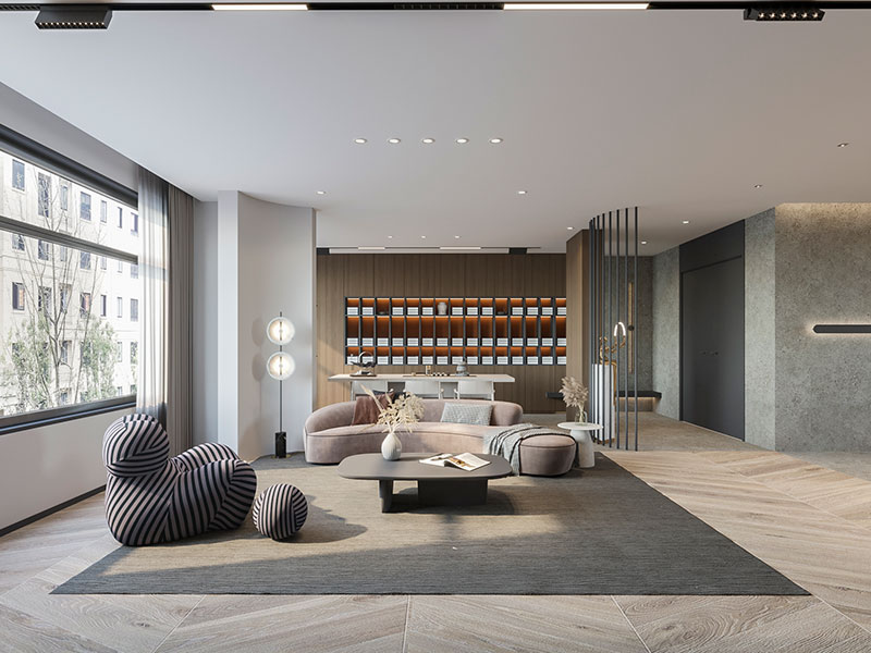 本案以简约风格为内核,以灰白、木色为柔和主调,凭借利落线条、质感材质与功能化布局等,打造层次丰富的现代居家美学。