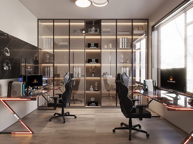 单独规划一个房间打造电竞房,工作之余与家人或朋友一起沉浸在游戏的快乐中,忘却疲惫和压力。