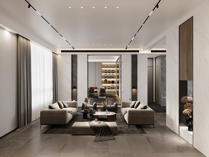本案以简约风格为内核,以灰白、木色为柔和主调,凭借利落线条、质感材质与功能化布局等,打造层次丰富的现代居家美学。