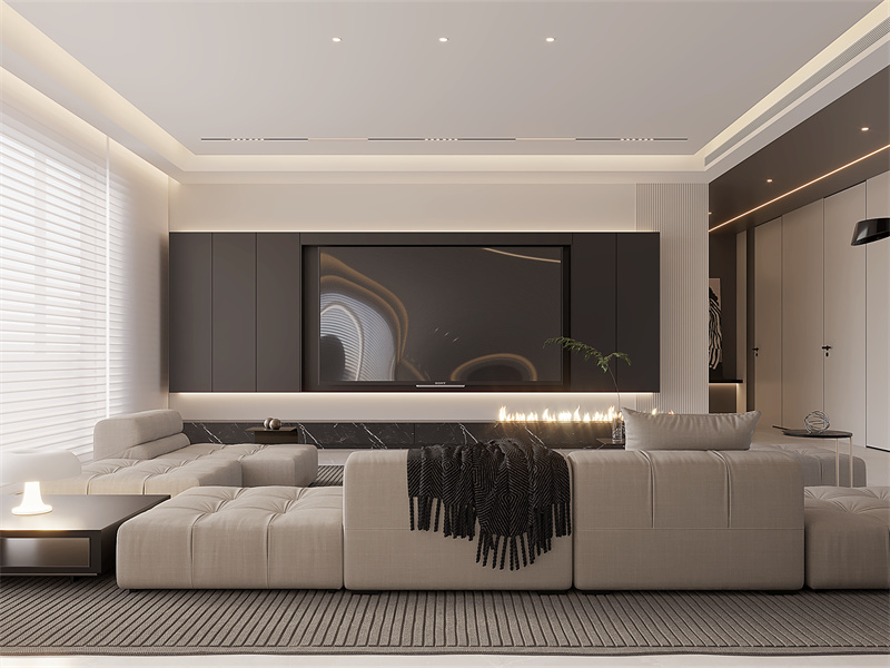 于电视墙中融入储物设计,呈现收纳柜式电视墙,彰显居室时尚大气的同时,也丰富空间实用功能。