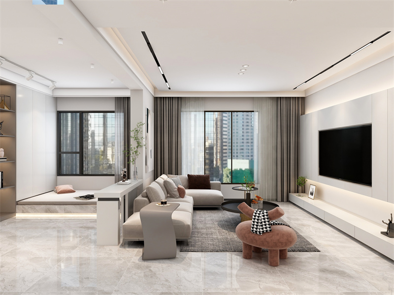 本案以极简风格为核心,选取白、浅灰、米白等低饱和色调构筑空间基底,通过“去繁就简”的设计逻辑,用利落线条、隐藏式收纳与无冗余装饰,诠释纯粹且具质感的居家美学。