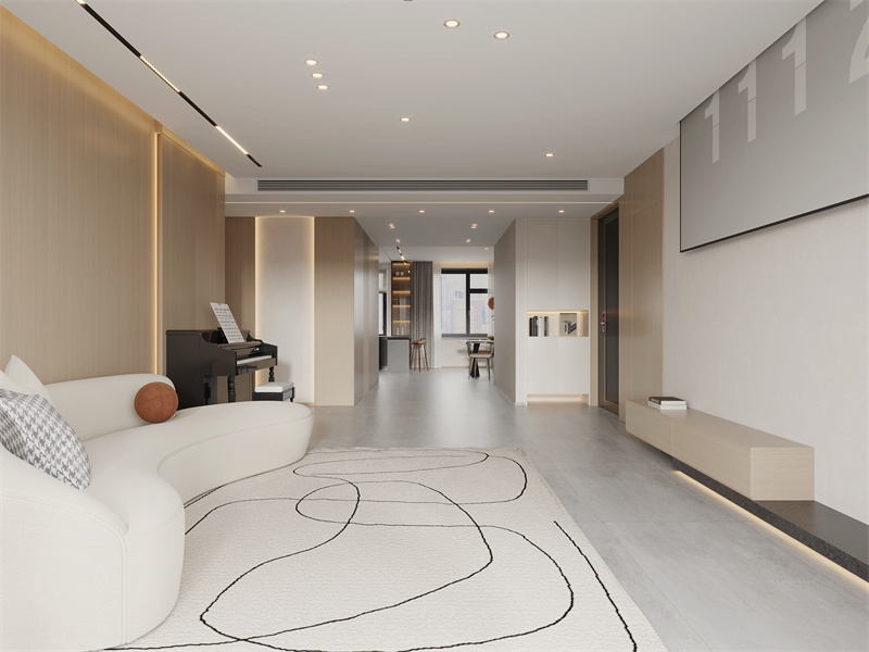 本案以简约风格为内核,以灰白、木色为柔和主调,凭借利落线条、质感材质与功能化布局等,打造层次丰富的现代居家美学。