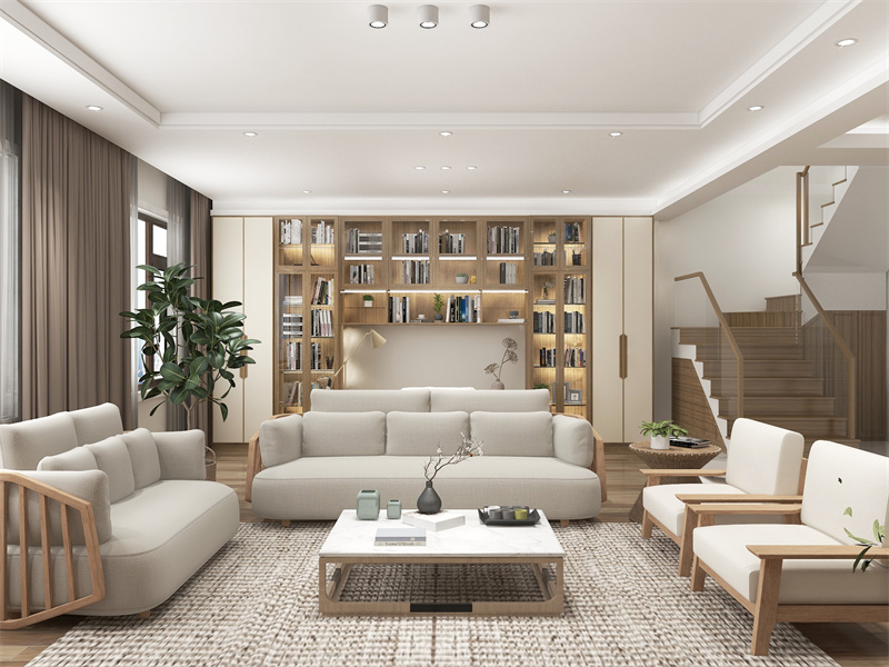 本案是别墅户型,定位于日式风格,以清新自然为主基调,巧用大量的木材、绿植和光影等,营造一种闲适写意的生活意境。