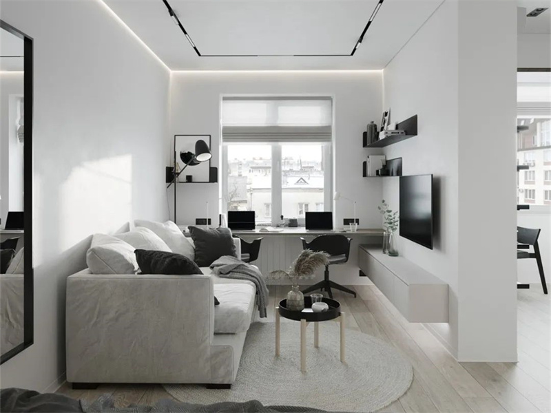 本案是刚需小户型,运用现代极简风格的家居设计理念,巧用空间布局、色彩和光影等的搭配,平衡功能与美学,增加居住舒适体验。