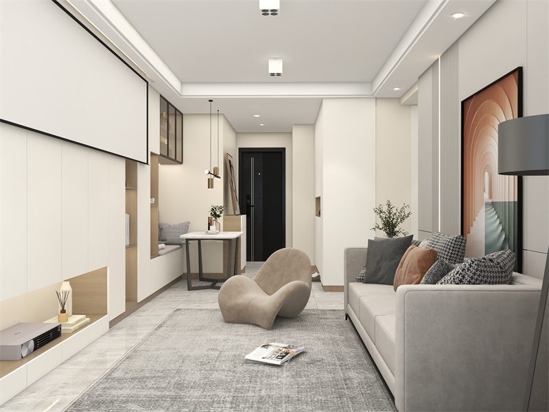 本案以极简风格为核心,选取白、浅灰、米白等低饱和色调构筑空间基底,通过“去繁就简”的设计逻辑,用利落线条、隐藏式收纳与无冗余装饰,诠释纯粹且具质感的居家美学。