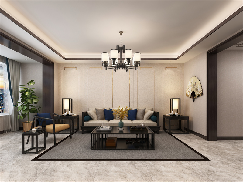 本案客厅遵循美式风格的设计理念,可在此与家人围坐聊天,或招待宾客,享受美式家居带来的舒适与惬意,充分感受美式生活的悠闲与自在。