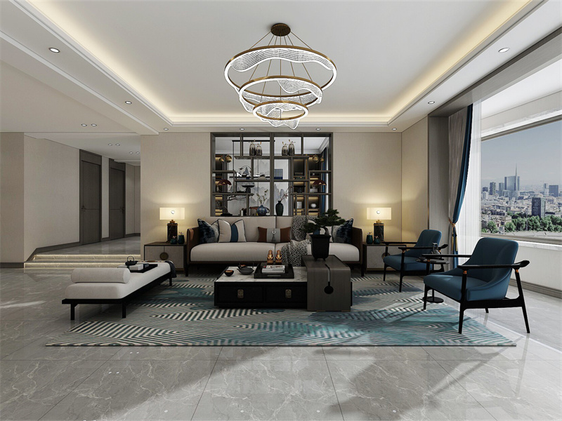 无主灯设计通过隐藏式射灯模拟传统 “天圆地方” 理念,光线漫反射于宣纸质感的墙布,让会客、休憩皆沉浸于现代与古典交织的意境中。