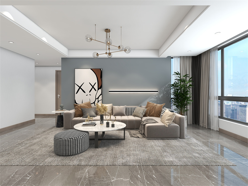 浅灰艺术漆墙面打底,潮玩雕塑与几何摆件点缀,形成视觉韵律。周末观影时,孩子在地毯嬉戏,极简线条与低饱和色调,既容纳兴趣收藏,又维持空间利落秩序。