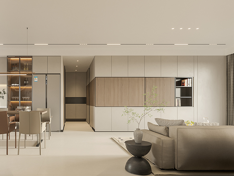 本案以简约风格为内核,以灰白、木色为柔和主调,凭借利落线条、质感材质与功能化布局等,打造层次丰富的现代居家美学。