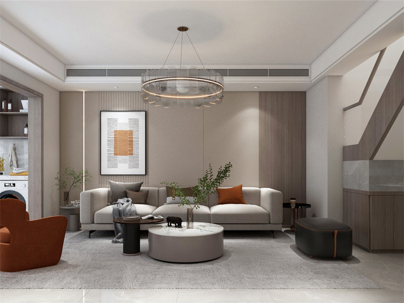 本案采用现代简约风格,主色调以柔和的灰白、木色为主,搭配少量亮色点缀,营造出简洁明亮又不失温馨的氛围。无论是休闲娱乐、亲友相聚,还是阅读办公、休憩睡眠,各空间都能很好地适配多样居家生活,尽显现代简约风格的雅致与实用。