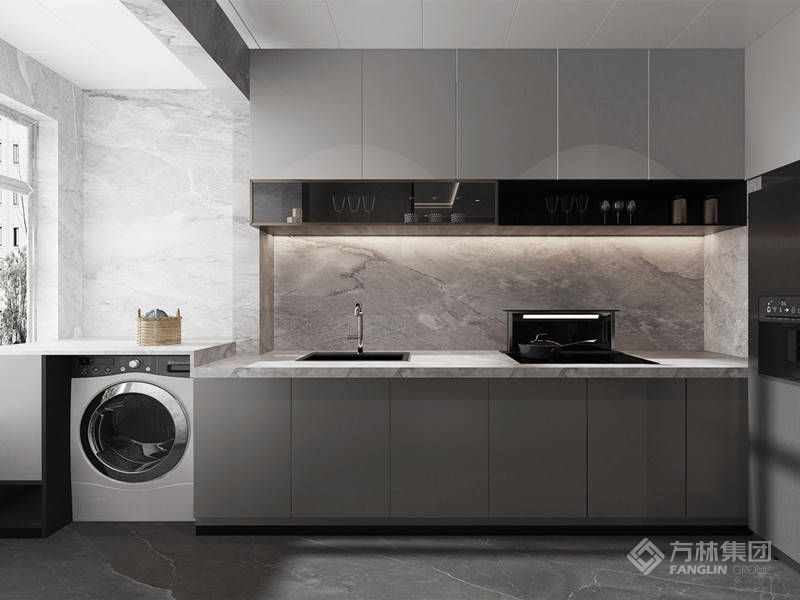 作为家中烹饪食材的功能空间,厨房在装修布局时要注重其收纳功能布局设计,保持空间的整洁明亮。厨房收纳建议围绕“洗-切-炒”动线,让厨具“各归其位”。